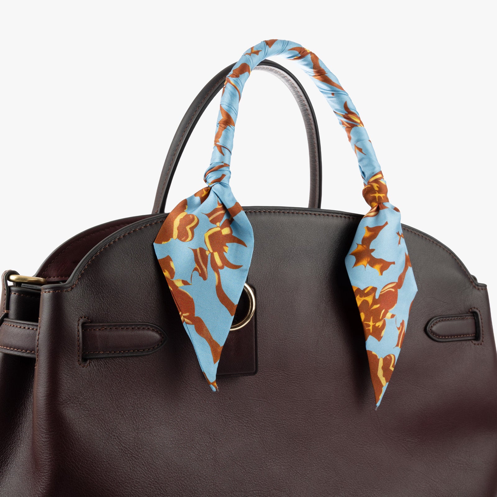 The abstract design of this skinny scarf is based on the pattern of the fused recycled glass beads from Ghana used to make the Design by O.H. Okani bag charm. The original design was first hand drawn by O.H. with color pencils, and digitized to include several color variations. The light blue, brown, and yellow colors of this design are beautiful and eye-catching. Tie it on your hand bag handle as a bow or wrap it around the bag handle to add a pop of color. It can also be worn around your wrist or neck, as a hair tie, or even as a belt! For a more dramatic look, pair it with a complementary Design by O.H. bag charm, such as the Odamea, or a contrasting bag charm of your choice!